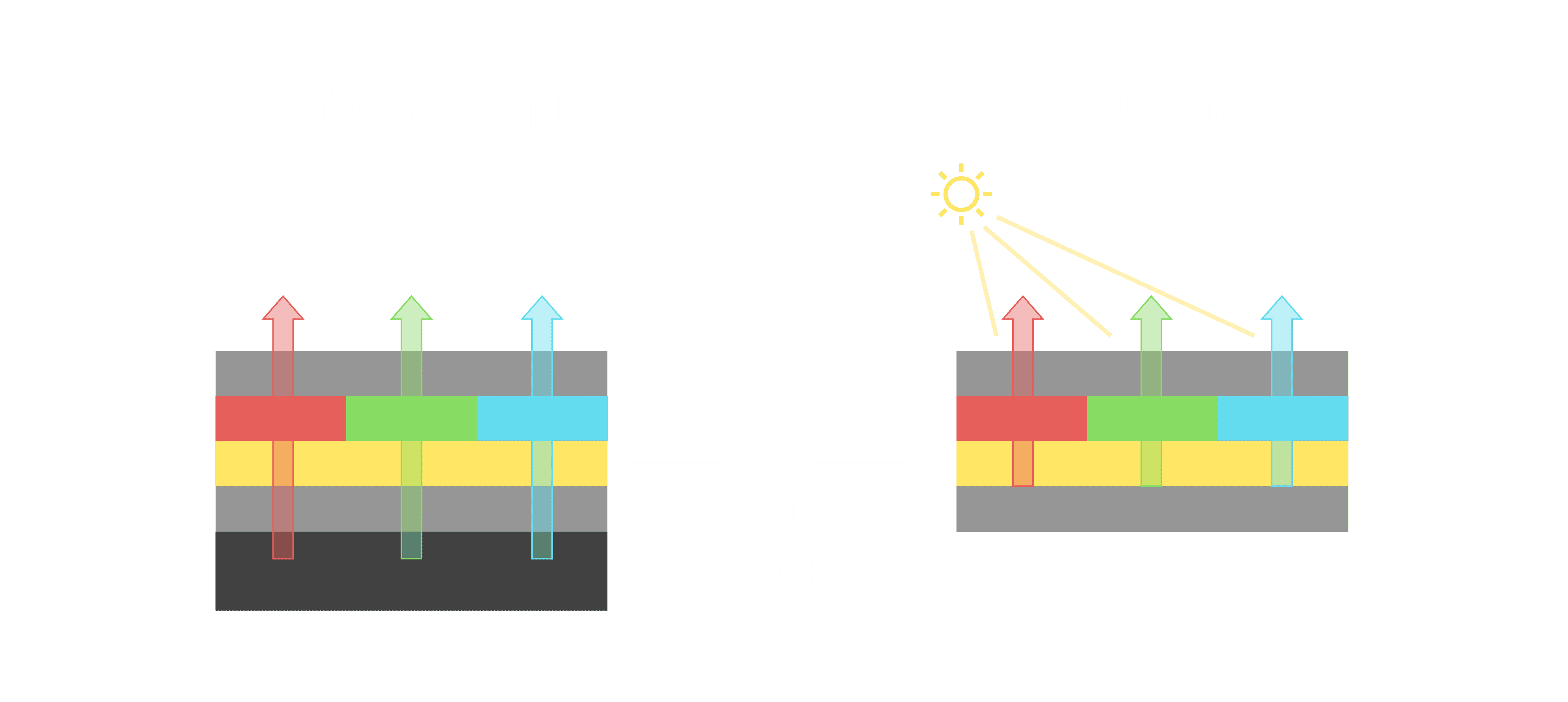 与传统需搭配背光单元的液晶显示相比,,,,反射式液晶技术不仅更省电、、、、更轻薄,,且即便在艳阳下仍能清晰显示。。。。此外,,少了背光单元,,,也大幅降低了 LED 蓝光伤害眼睛的疑虑。。