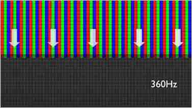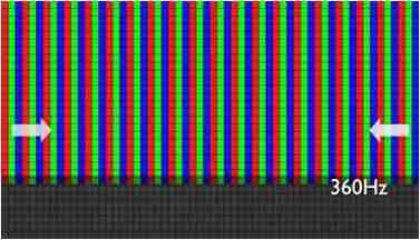 传统液晶驱动是从左到右单向进行,,,,在画面更新速度愈来越愈快的情况下,,,,位于驱动线路末端的右下角区域,,,,画素的闸极来不及在短时间内获得足够电压,,,无法显示出正确的颜色资讯。。。。